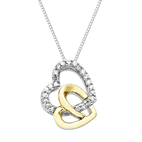 Sterling Silver and 14k Gold Double Heart Diamond Pendant, 18" Review