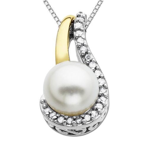 Sterling Silver and 14k Yellow Gold 6.5mm Freshwater Cultured Pearl and Diamond Pendant (0.06cttw, I-J Color, I3 Clarity), 18" Review