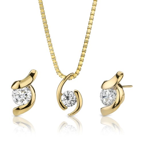 Golden Rhapsody: Sterling Silver Designer Inspired Bridal Jewelry Earring/ Pendant Set with 14K Gold Plating and Solitaire Diamonds Review