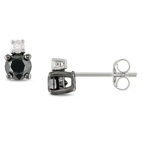 1 ct. Black and White Diamond Earrings in 10k White Gold, GHI, I3