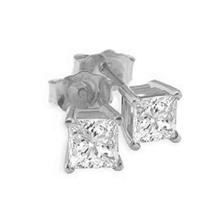 These are Brilliant Princess Cut Natural Diamond Studs. They are made from Solid 14K White Gold and weighs 1.00 grams. The 0.33 ctw Natural White diamonds are I1 in Clarity & G-H in Color. Very well made, the earring is hallmarked 14K Gold. The dimensions of each earring is 3.3mm. These earrings have push-backs. The setting is 4-Prong. These earrings are a perfect gift for any occasion.