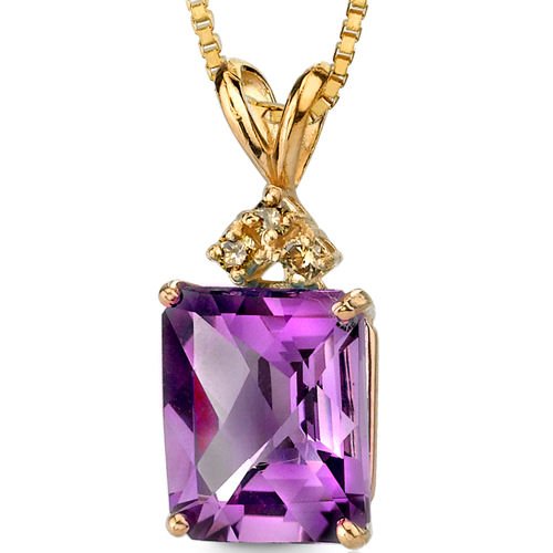 14 Karat Yellow Gold 4.00 carats Radiant Checkerboard Cut Amethyst Diamond Pendant Review