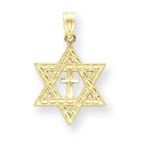 14k Diamond-Cut Star Of David With Cross Pendant - Measures 16x16mm (5/8")- .8 Grams in 14k Yellow Gold - Chain not included - Product Attributes: - Diamond-cut - Solid - Textured back - Polished - Textured - JewelryWeb Style: QTP42032NC - FREE gift-ready jewelry box - This Item Does Not Ship With a Chain