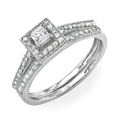 14k White Gold Round & Princess Diamond Ladies Bridal Ring Engagement Set 1/2 CT (0.50 cttw, G-H Color, SI2-SI3 Clarity) Review